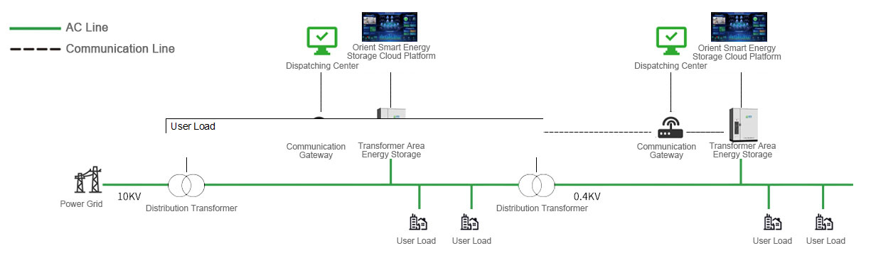 Energy storage for distribution lines or transformer areas can provide dynamic capacity expansion, reduce transformer load rate during peak hours, delay distribution network expansion and upgrade, and address various power quality issues such as bidirectional voltage limit violations, three-phase imbalance, and low power factor. It adopts peak shaving and valley filling strategies to reduce transformer load rate and operational risks. As a backup power source, mobile energy storage enables rapid deployment and improves problem-solving efficiency.