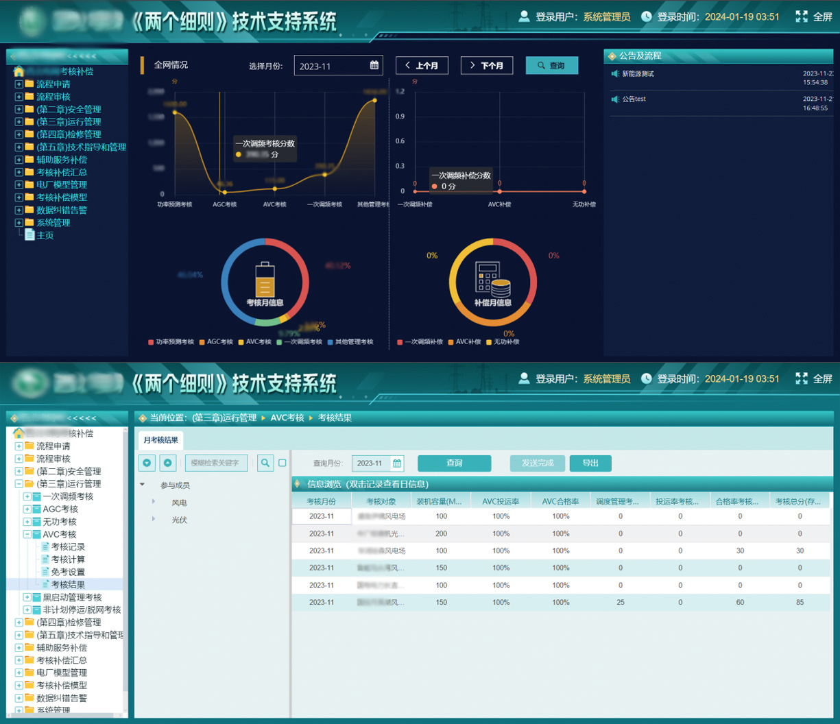 该系统通过自动化、透明化的管理方式,显著提升了电力公司进行“两个细则”日常考核补偿管理工作的执行效率,为新能源场站参与电网调节服务提供了规范化、可追溯的技术保障。